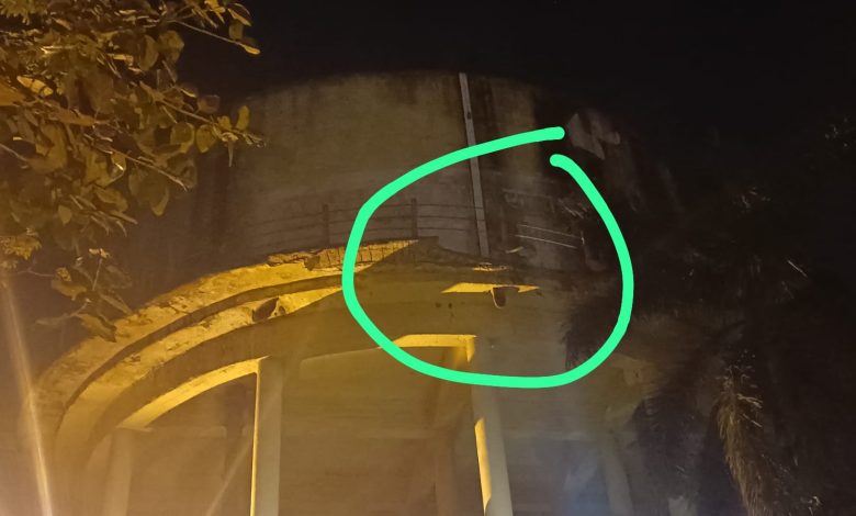 किसी भी दिन गिर कर ढह सकती है,जर्जर पानी टंकी,एक हिस्सा अचानक जमीन पर गिरा