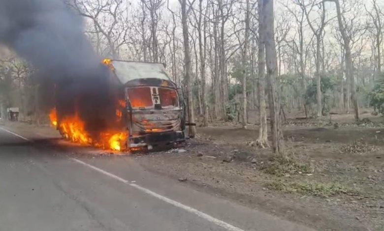 भीषण अग्निकांड: चलते कंटेनर में लगी आग, ड्राइवर और हेल्पर ने बचाई जान