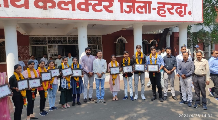 स्वतंत्र हरदा। मध्य प्रदेश माध्यमिक शिक्षा मंडल की हाई स्कूल एवं हायर सेकेंडरी परीक्षाओं की मेरिट लिस्ट में स्थान पाने वाले मेधावी विद्यार्थियों का रविवार को कलेक्टर आदित्य सिंह ने माल्यार्पण कर एवं प्रशस्ति पत्र प्रदान कर सम्मान किया । जिला पंचायत के मुख्य कार्यकाल अधिकारी रोहित सिसोनिया, जिला शिक्षा अधिकारी पीएम सिंह तथा सहायक संचालक शिक्षा बलवंत पटेल भी इस अवसर पर उपस्थित थे। जिन विद्यार्थियों का सम्मान इस अवसर पर किया गया उनमें कक्षा 12वीं उत्तीर्ण करने वाले कुशाग्र जैन, पारस विश्वकर्मा, रिजवाना खान, योगेश मालवीय, आकांक्षा जोशी, सलोनी जैन, मोहिनी सिंह और श्रेया पुनासे तथा कक्षा दसवीं उत्तीर्ण करने वाली छात्रा छवि पांडे यशिका कुशवाहा और उत्सव शामिल थे। कलेक्टर सिंह ने इस अवसर पर उपस्थित सभी मेधावी विद्यार्थियों, उनके माता-पिता एवं उनके शिक्षकों को शुभकामनाएं दी। उन्होंने इस अवसर पर कहा कि कक्षा 12वीं उत्तीर्ण करने के बाद विद्यार्थियों के उज्जवल भविष्य के लिए बहुत से मार्ग एक साथ खुल जाते हैं। उन्होंने सभी विद्यार्थियों से कहा कि इस वर्ष की तरह आगे भी अच्छी तरह मन लगाकर पढ़ाई करें और जब तक मन वांछित मंजिल ना मिल जाए तब तक लगातार मेहनत करते रहें। मुख्य कार्यपालन अधिकारी सिसोनिया ने इस अवसर पर सभी विद्यार्थियों को शुभकामनाएं देते हुए कहा कि उपस्थित सभी मेधावी विद्यार्थी अपने मनपसंद पाठ्यक्रम में प्रवेश पाने के लिए प्रयास करें एवं स्नातक परीक्षा उत्तीर्ण करने के बाद अपने मनपसंद व्यवसाय के लिए तैयारी करें, उन्हें मंजिल जरूर मिलेगी।