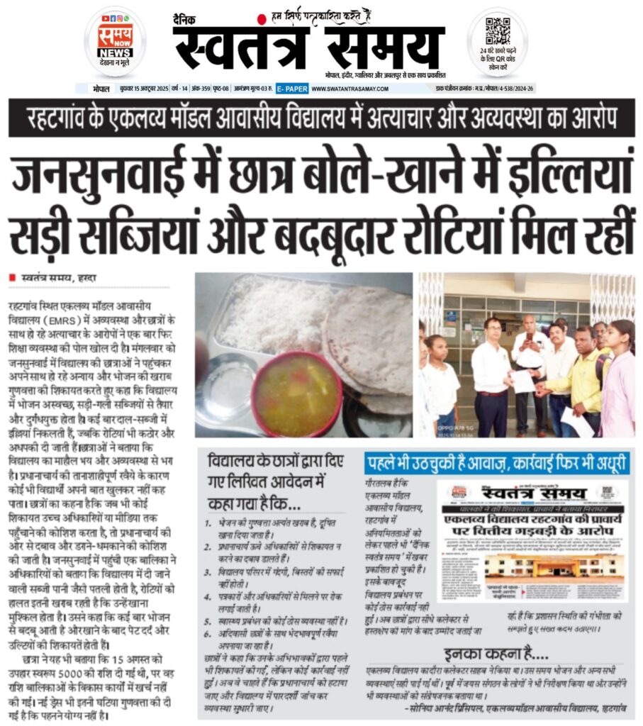 दैनिक स्वतंत्र समय ने पहले भी एकलव्य आदर्श आवासीय विद्यालय रहटगांव में हो रही अनियमितताओं को लेकर समाचार प्रकाशित किए थे, लेकिन आज बच्चों द्वारा किया गया यह बड़ा पैदल आंदोलन मामला फिर चर्चा में ले आया है। प्रकरण के बाद शिक्षा विभाग और प्रशासन दोनों की कार्यप्रणाली पर सवाल उठना स्वाभाविक है, क्योंकि बच्चों को अपनी समस्याएं बताने के लिए 40 किलोमीटर पैदल चलने को मजबूर होना पड़ा।