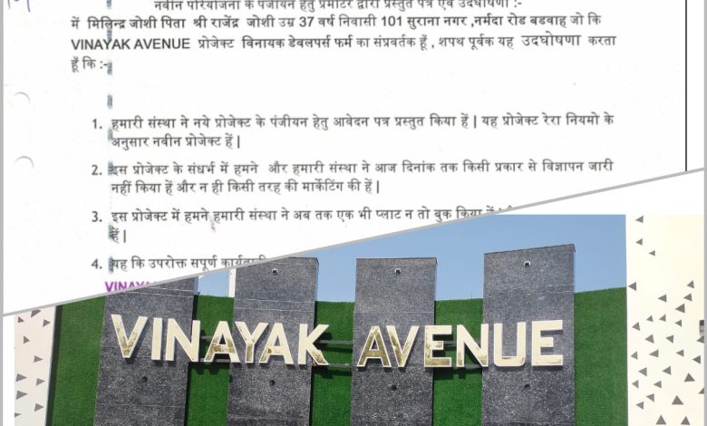 रेरा पंजीयन का झूठा विज्ञापन कर विनायक एवेन्यू कॉलोनी में बेच रहे प्लॉट