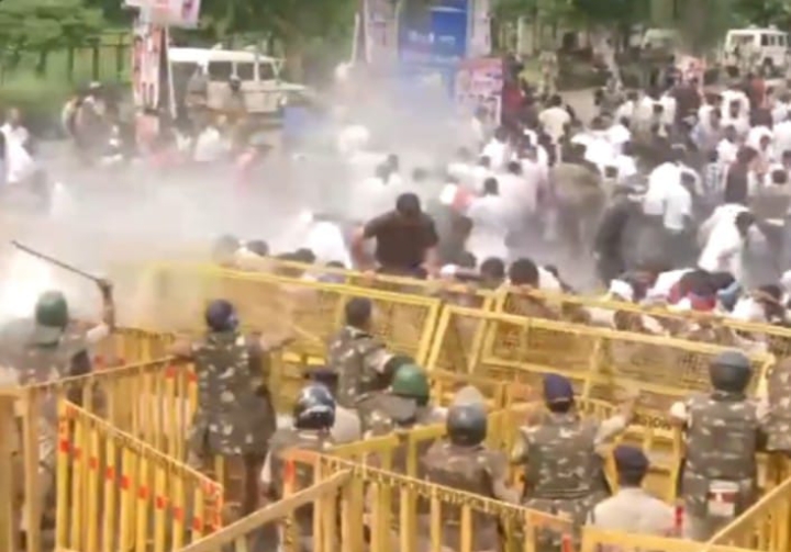 प्रदर्शनकारियों पर पुलिस ने चलाई वाटर कैनन: जिलाध्यक्ष ने नर्सिंग घोटाले और नीट पेपर लीक के विरोध में प्रदर्शन किया