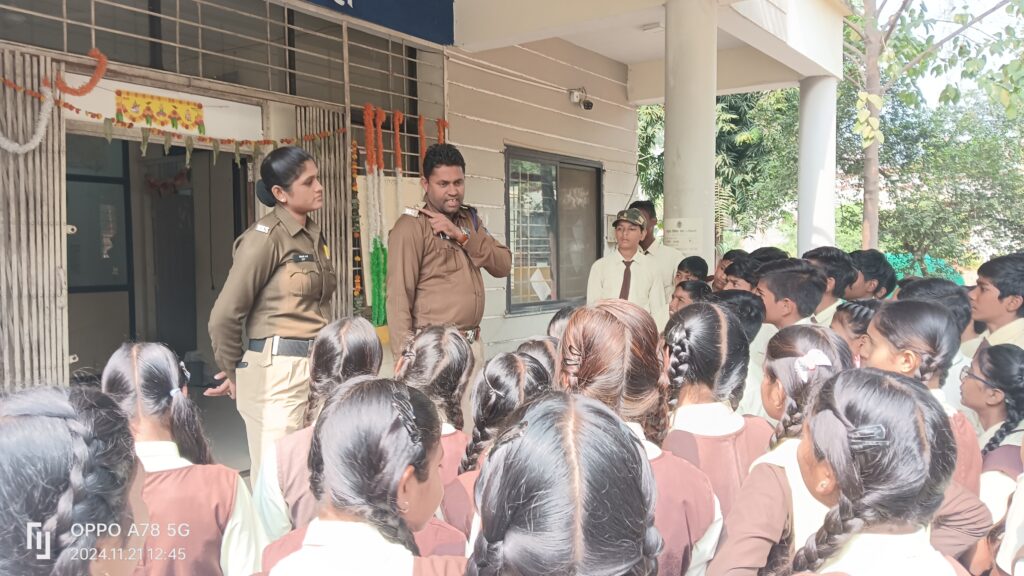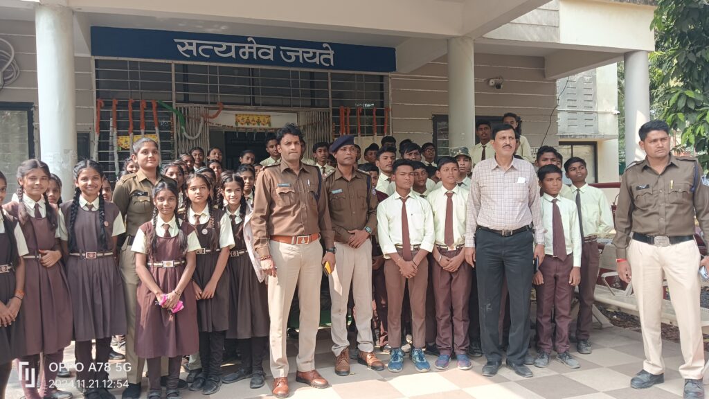 महिला पुलिस सिपाही वैशाली परते ने छात्रों को थाना परिसर का निरीक्षण करवाया। बच्चों को थाना प्रभारी का कक्ष, स्टॉक रूम और रिकॉर्ड रूम दिखाया गया। इस दौरान थाना प्रभारी प्रहलाद सिंह मर्सकोले ने उन्हें पुलिस के कार्यों और दिनचर्या के बारे में विस्तार से बताया। थाना प्रभारी ने छात्रों को आजकल बढ़ते साइबर अपराधों जैसे ऑनलाइन ठगी और फेक प्रोफाइल के खतरे के बारे में जागरूक किया। उन्होंने बताया कि सतर्कता और जागरूकता ही साइबर अपराधों से बचने का सबसे अच्छा तरीका है। साथ ही, उन्होंने छात्रों को साइबर हेल्पलाइन का उपयोग करने और किसी भी संदिग्ध गतिविधि की सूचना तुरंत पुलिस को देने की सलाह दी। थाना प्रभारी मर्सकोले ने छात्रों को बताया कि कानून का पालन सभी के लिए अनिवार्य है। उन्होंने बच्चों से कहा कि पुलिस से डरने की आवश्यकता नहीं है, बल्कि किसी भी सवाल या समस्या पर पुलिस से बेझिझक संपर्क करना चाहिए। उन्होंने यह भी बताया कि पुलिस सेवा में आने के लिए अनुशासन और शिक्षा का होना बेहद जरूरी है। थाना प्रभारी ने छात्रों को बेहतर नागरिक बनने के लिए प्रेरित किया। उन्होंने कहा कि पुलिस अधिकारी बनने के लिए कड़ी मेहनत, अच्छी पढ़ाई और ग्रेजुएशन आवश्यक है। शिक्षा और अनुशासन ही सफलता के मुख्य आधार हैं। स्कूली शिक्षक ने कहा की स्कूल में सुरक्षा विषय के अंतर्गत किया गया, ताकि बच्चों को कानून और सुरक्षा से जुड़े व्यावहारिक अनुभव मिल सकें। और कानून की जानकारी देने के लिए था, बल्कि उन्हें अपराधों के प्रति सतर्क और जागरूक बनाने का एक प्रयास भी था। इस पहल से बच्चों को न केवल सुरक्षा और कानून का महत्व समझ आया, बल्कि उन्हें भविष्य में जिम्मेदार नागरिक बनने की प्रेरणा भी मिली।
