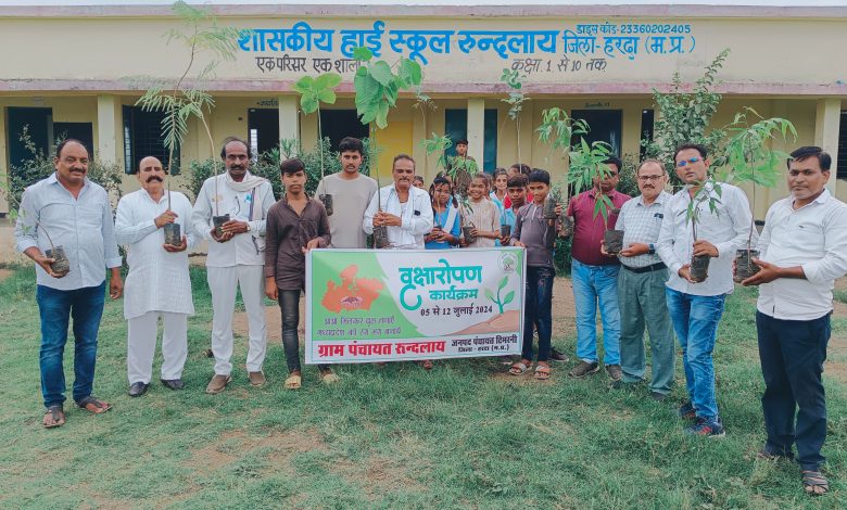 स्वतंत्र हरदा। ग्राम पंचायत रुंदलाय में शासन के आदेशानुसार वृक्षारोपण कार्यक्रम का आयोजन किया जा रहा है। 5 जुलाई से 12 जुलाई के बीच आयोजित इस कार्यक्रम के तहत आदर्श अमृत सरोवर रुंदलाय और हाई स्कूल परिसर रुंदलाय में जनप्रतिनिधियों, शासकीय कर्मचारियों, ग्राम पंचायत के सरपंच, पंचों और ग्रामीणों द्वारा पौधे रोपित किए गए। इस दौरान आम, अशोक, कदम, जामुन, गुलमोहर, शीशम, नीम, सीताफल, फिल्टाफोर्म, करंजी आदि पौधे लगाए गए।